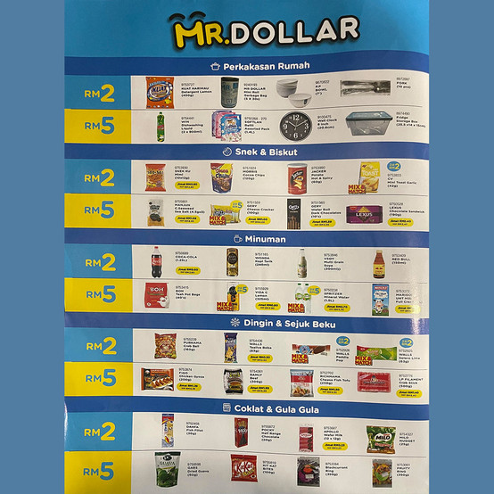 Banyak produk naik harga bulan ni. Tetapi anda tau tak, MR.DOLLAR masih mengekalkan harga tetap RM2 dan RM5 untuk memastikan anda mempunyai pengalaman membeli-belah yang hebat bersama di MR.DOLLAR!